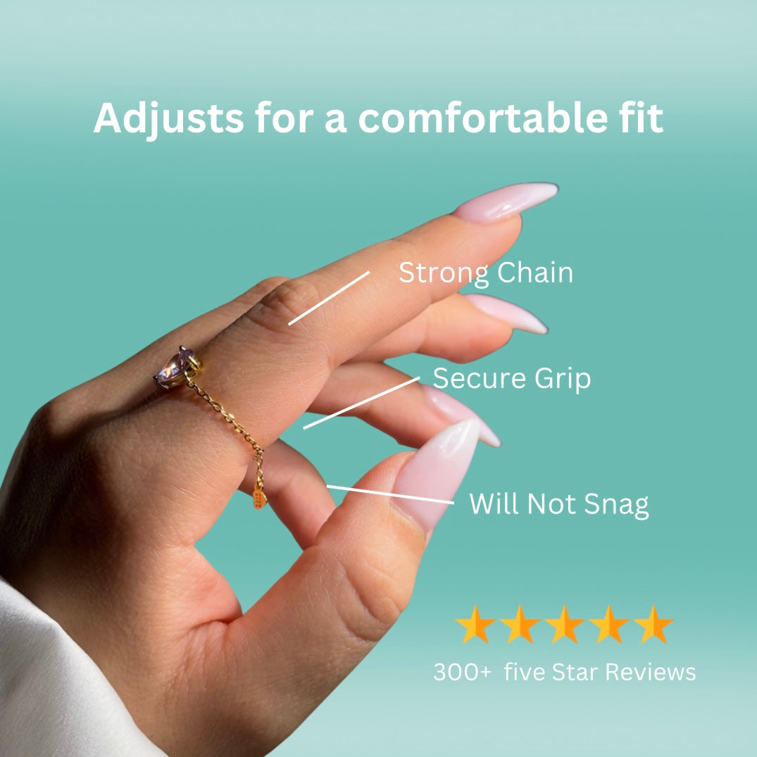Crafted with precision and attention to detail, the adjustable chain ensures a perfect fit, offering both comfort and versatility. Whether you have petite fingers or experience occasional swelling, this ring adapts effortlessly, providing a secure and elegant fit every time.